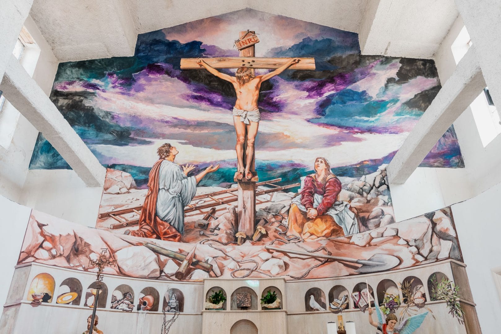 Il terremoto del 1980 colpisce duramente l’edificio, provocando danni strutturali che rendono necessari importanti interventi di consolidamento e restauro. In questo contesto la conservazione delle pitture assume un valore particolare: non si tratta soltanto di salvare un patrimonio artistico recente, ma di custodire la memoria di una stagione creativa che aveva contribuito a dare un volto nuovo alla chiesa e alla comunità.