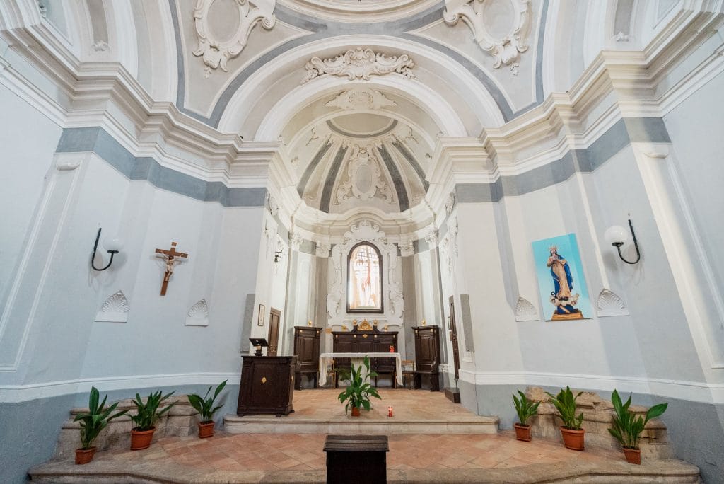 Il cuore religioso della città è la Basilica Pontificia di Santa Maria della Pace, costruita nel XVII secolo su una precedente chiesa medievale. La sua maestosa architettura barocca, con la cupola imponente e l’interno in marmi policromi, racconta la devozione dei campagnesi per la Madonna della Pace, proclamata patrona cittadina. Nella cripta sottostante si trova la cappella della Confraternita del Monte dei Morti e Beata Vergine del Carmelo, uno dei luoghi più suggestivi della città, con un piccolo ossario e testimonianze di riti devozionali antichissimi.